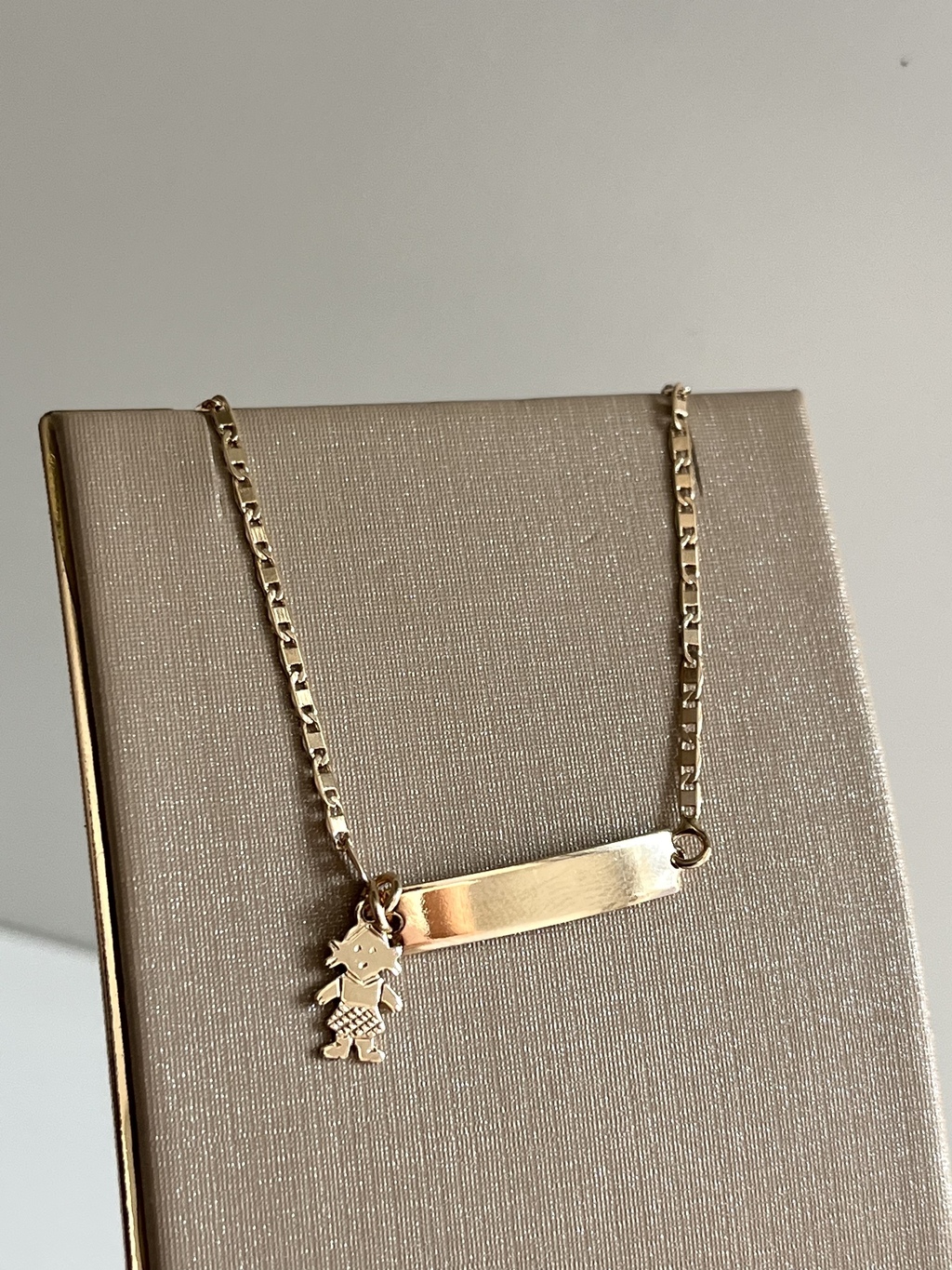 Pulseira infantil com placa em pingente e menina, pode ser personalizada preferência do cliente! Banho em ouro 18k, garantia excepcional de 1 ano no banho.