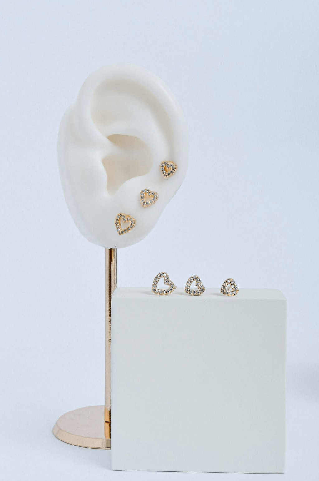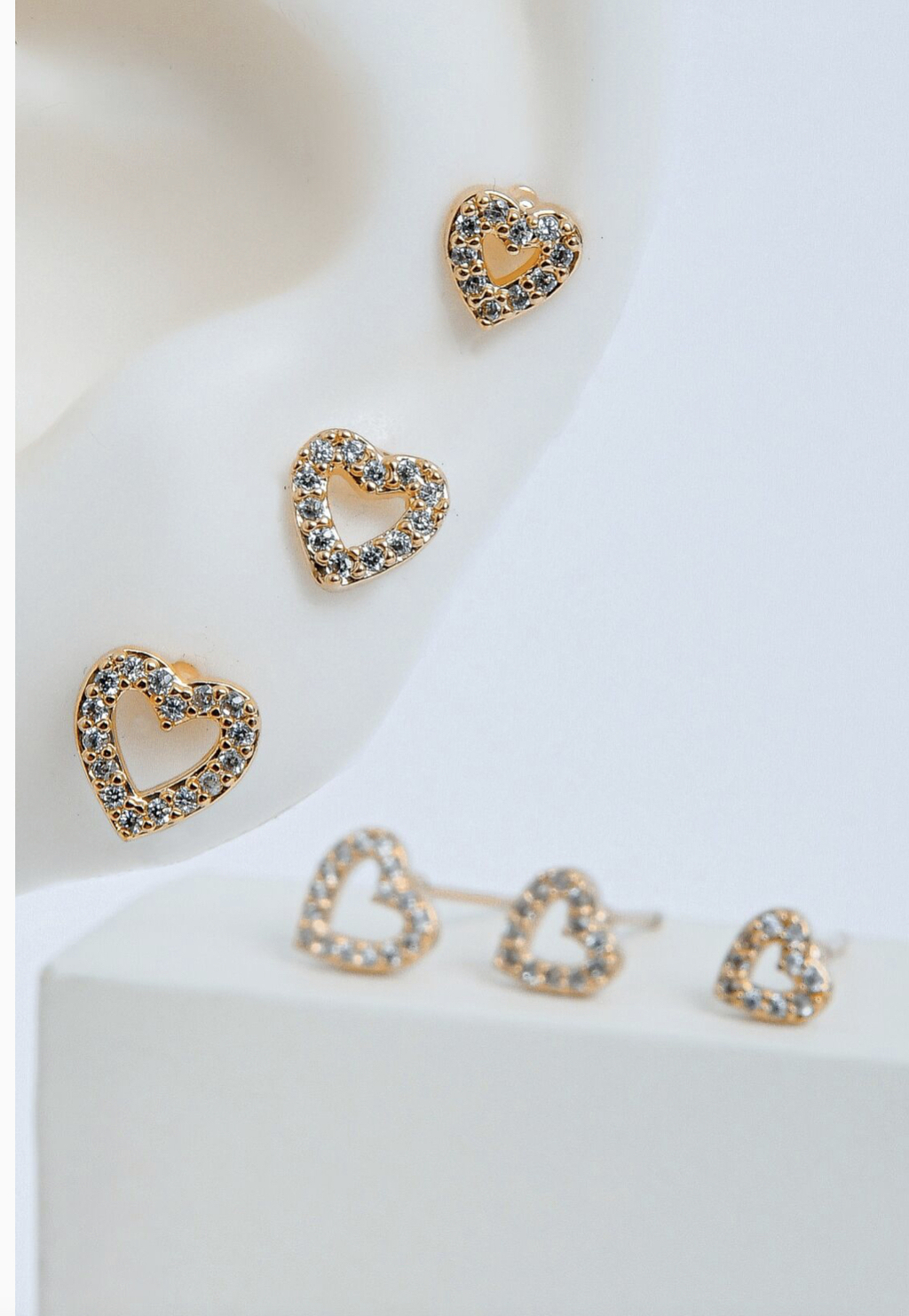TRIO DE BRINCOS CORAÇÃO VAZADO CRAVEJADO