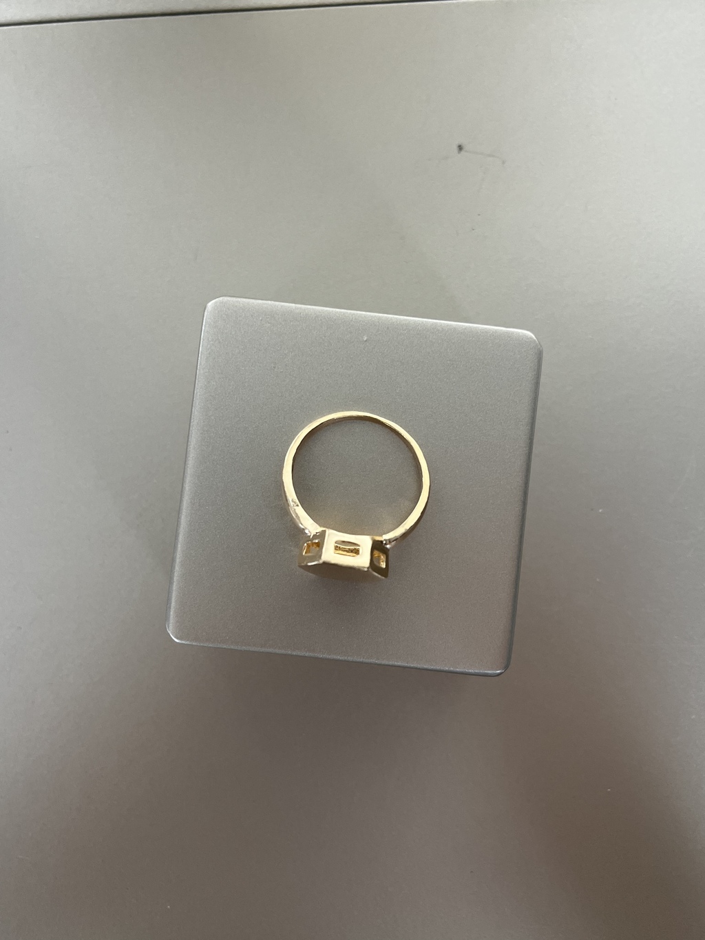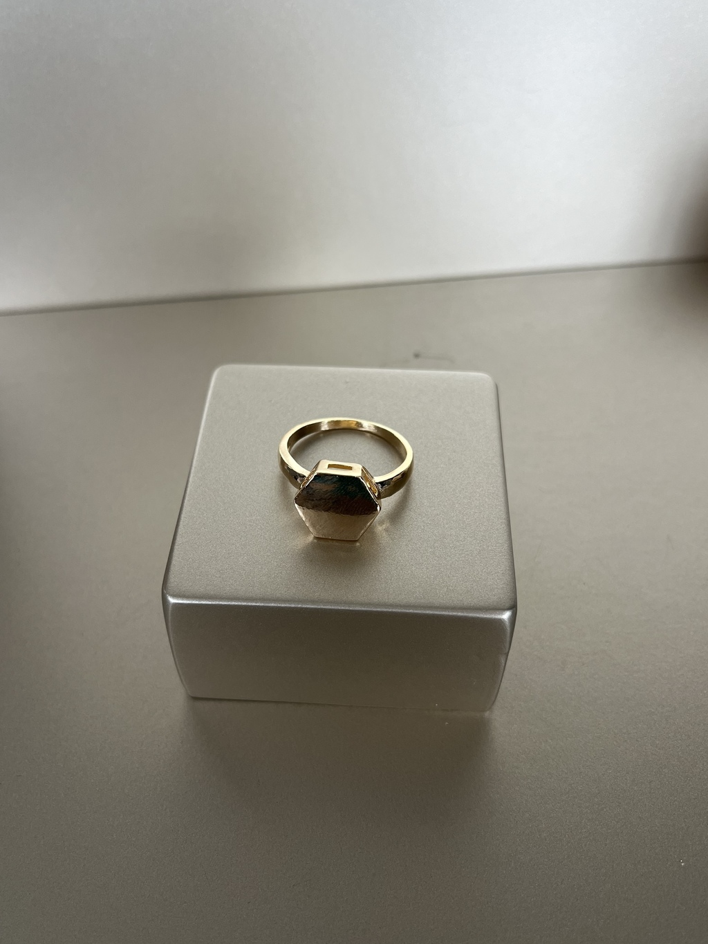 Anel exagonal bahado em ouro 18k podendo ser personalizado em cima da base que mede 1,3x1,3cm