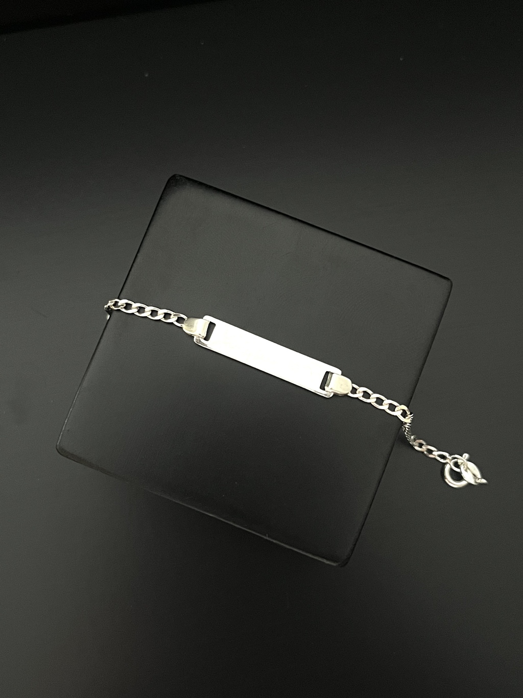 Pulseira prata 925 para personalização medindo total 14cm e a placa com 3 cm.
